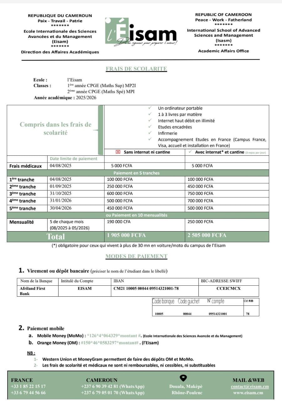 Frais de concours : 5 000 FCFA | Paiement par Mobile Money ou sur place